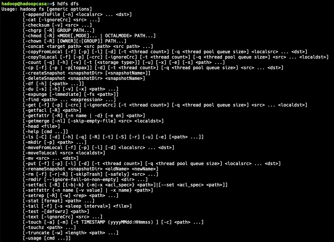 Mostramos todas las opciones posibles del comando hdfs dfs.